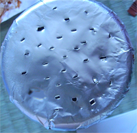 leave the shinny side of the foil down and place the foil in the top with equal edges around the bowl.