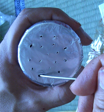 針のようなもので大体 20~40 個の穴を開けます。穴は小さければ小さいほどシーシャフレーバーが長持ちします。
